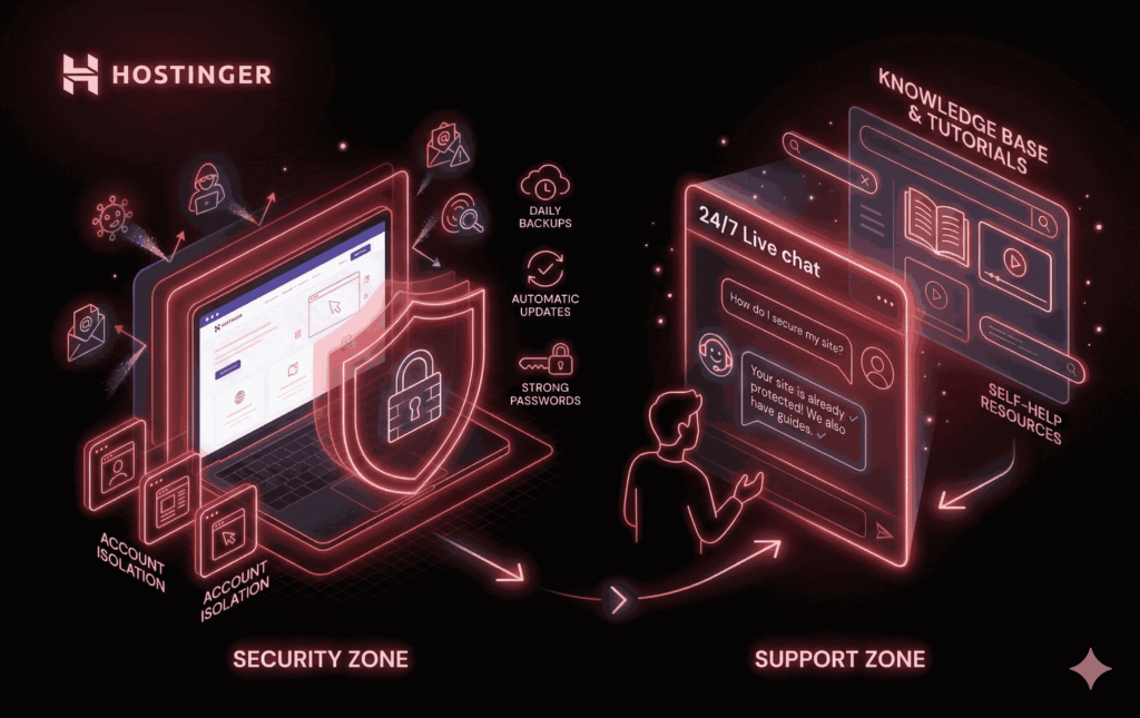Security can sound intimidating, but Hostinger handles most of it behind the scenes. Features like firewalls, malware scanning, and account isolation help protect your site.