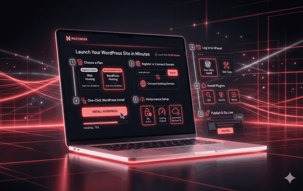 WordPress setup is fast, and the learning curve is low. Beginners can get a functional site online within 30–60 minutes following Hostinger’s step-by-step prompts.