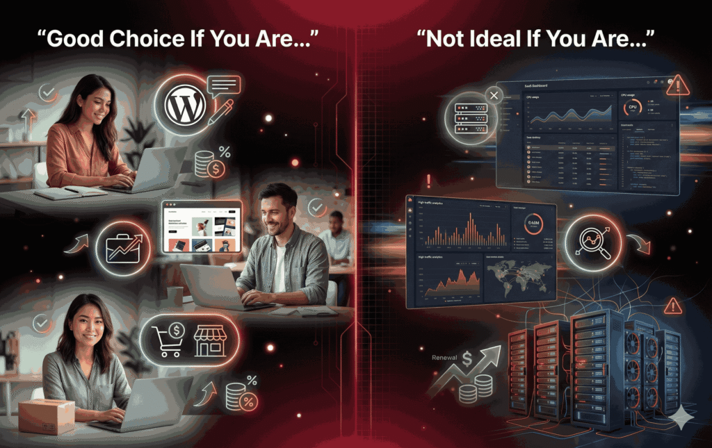 • Running a growing SaaS product, large marketplace, or high-traffic news site (you’ll likely need VPS/Cloud or a managed host later).